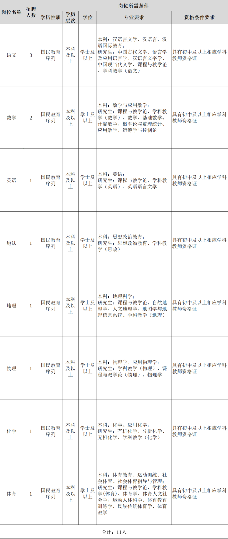 招聘岗位所需的具体条件以附件《西咸新区沣东新城第一初级中学2023年面向社会公开招聘教师岗位需求一览表》的要求为准。