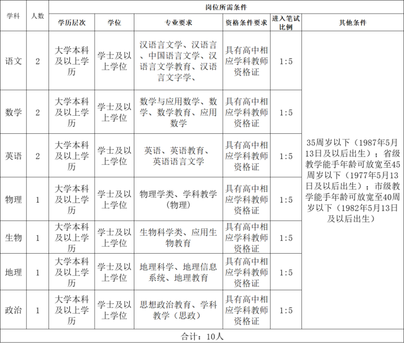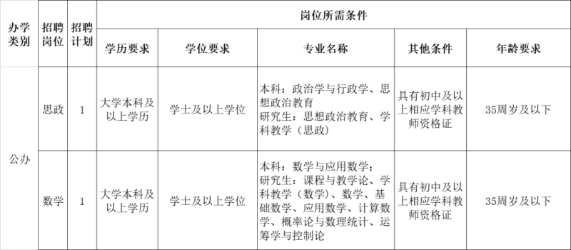 5.符合具体岗位要求的其他条件(见附件1)。省级教学能手、骨干教师、学科带头人年龄可放宽至45周岁以下(1977年5月13日及以后出生);市级教学能手、骨干教师、学科带头人年龄可放宽至40周岁以下(1982年5月13日及以后出生),本科及以上学历。