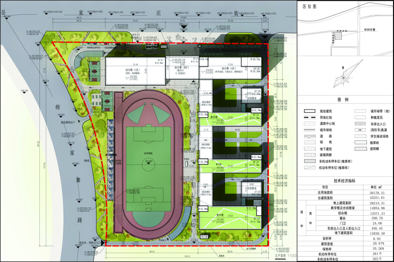 项目位于秦汉新城师家寨路以东、岳家庄路以南区域。本项目规划净用地面积30178.31㎡,总建筑面积43254.61㎡,主要建设教学楼及合班教室、综合楼等。详见总平面示意图。